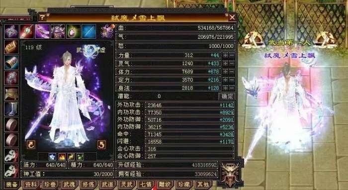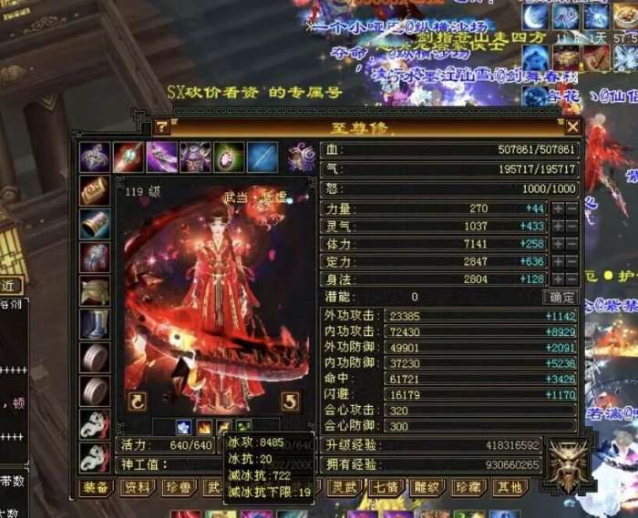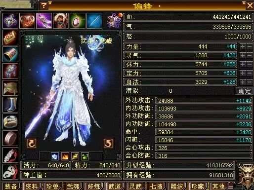 蓝量不到血量一半,但是亮点是特别暴力,五修(四属性+增伤)火玄双抗,满状态下内功攻击能达到10万,这个伤害不用细说,暴力得不要不要。