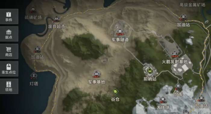 游戏中的三级资源区域,主要是军事基地和污水处理厂这两处,在这里可以拿到蓝色与红色卡片的设计图样。每个点位都会出现5名实力很强的敌人,整张地图一共只有三个这样的地方,4级资源包括火箭发射基地和军事隧道。里面有专门的卡片获取资源,还能找到坦克这种大型作战装备,同样在地图里分布着三个。