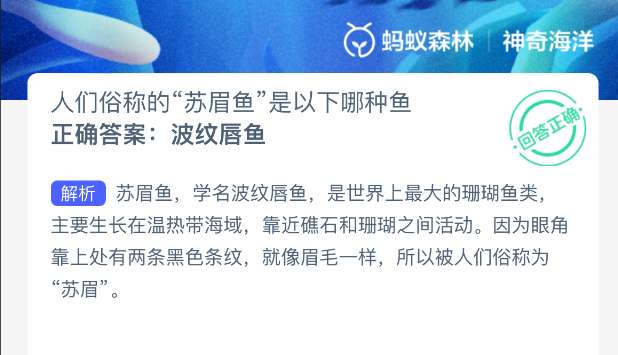 以上就是人们俗称的“苏眉鱼”是以下哪种鱼?神奇海洋今天答案最新2025年11月25日分享,更多相关攻略内容,请点击关注pk游戏网更新!