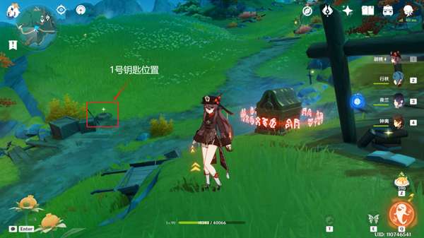 1号钥匙位置(下图),走到小坑点击“调查”即可获得。
