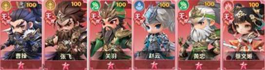首先为大家推荐的第一个阵容可以利用赵云+张飞+关羽+曹操+黄忠+蔡文姬来进行搭配,这个资源其实使用的武将也是投入比较少的,其中的话大家可以把主要的输出角色曹操给养起来,曹操作为当前可以用求贤令来进行兑换的一个武将,自身的获取速度上面还是比较快的,而且张飞前期其实大家只要点击了VIP升级的话,就可以直接拿到手,通过累计登录的话,黄忠也是可以很快的就将他的强度提升起来,基本是可以通过十几天左右就能拿到20星的强度,而关羽的话一般在自身的能力上面,其实参与爬塔令的话,会为大家带来的爬塔效果增加的层数更多的同时,他能够带来的战术也就越多,所以在本体卡牌越多的情况下,后期其实他能够得到的提升也很快。