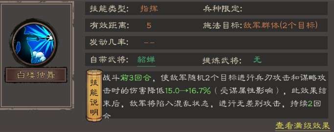 软件提交 专题合集 热门手游三国乱世霸王貂蝉技能怎么样,貂蝉核心价值来自自带技能“白楼独舞”:战斗前3回合降低敌军2目标的兵刃/谋略伤害(受自身谋属性加成),后续还能附加2回合混乱效果,兼具减伤与控制,是前中期阵容的优质辅助选择。