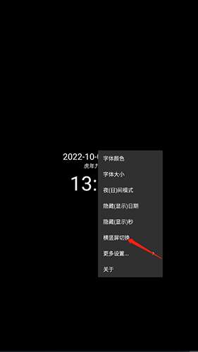 软件提交 专题合集 热门手游打开简黑时钟App后,点击“时间”选项,在弹出的菜单中选择“横竖屏切换”即可手动切换为横屏模式;若开启手机自动旋转功能,直接旋转设备屏幕也可自动适配横屏显示,满足床头或桌面场景的查看需求。