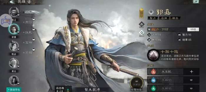 郭嘉是一位辅助向的策略型武将,他以“易伤传导”与“追击增效”为核心功能。技能强化后,郭嘉不仅能提升自身在追击格的触发概率,还可为敌方叠加多层易伤状态,大幅降低其承伤能力。这一机制在三国天下归心手游的长线消耗战中尤为关键,既能加速前排输出节奏,也能放大主力输出的爆发收益。同时,郭嘉的技能能耗设计合理,能量循环稳定,能确保在整场战斗中持续提供战术支持。