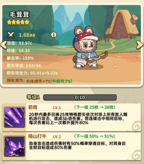 软件提交 专题合集 热门手游《五芒星战记》中的五星角色拉布布并非弱势。其核心技能“箭雨”在20秒内可召唤多枚箭矢连续攻击,同一目标伤害会递增。他虽不吃部分常规增益(如虎女、鳄鱼被动),但能有效享受闪电、刺猬及特定城墙皮肤的加成。