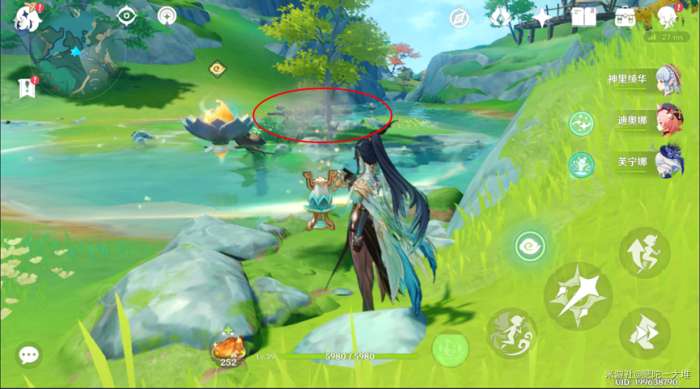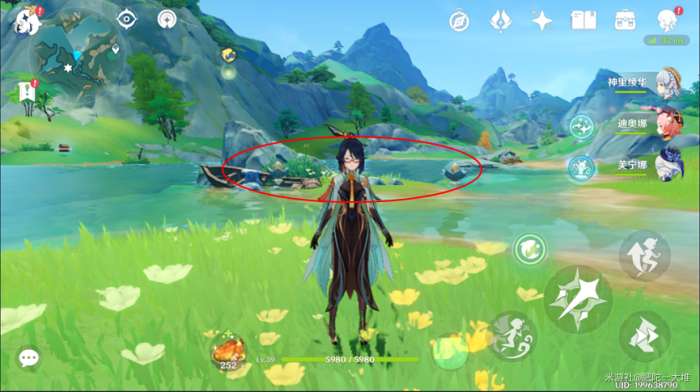 1.沿着图中路线,找到水池旁边流动的莲花场景即可解谜。