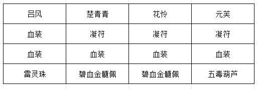 血装推荐龙卫灵虚拂和回春踏荆,如果毒量不够可以携带威能项链、蛟羊毒心佩、多个五毒葫芦,楚青青和吕风携带法力装等等,以每回合能毒死刀妖为最高优先级。