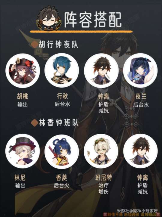 ① 胡行钟夜队: 胡桃+行秋+钟离+夜兰