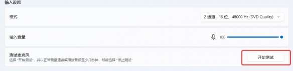 然后点击“开始测试”,即可检查麦克风输入声音是否正常