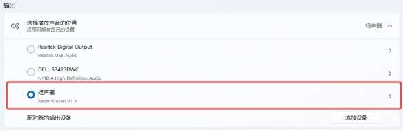 选错了输出设备,声音并没有从预期的输出设备播放,尝试从输出设备列表中选择正确的输出设备