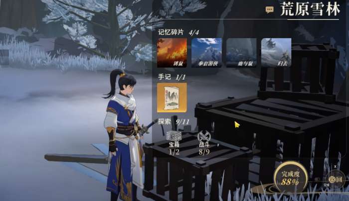 在荒原雪岭这里,将会呈现出一个到处都白茫的场景,玩家会进入到相对来说比较荒废的丛林,要在这里完成战斗和手记的搜寻挑战,进入场景之后,会率先遇到一个体型高大的角色,靠近对方之后就可以选择战斗,对战的时候建议大家选择诸葛玲珑作为整个队伍的主力,加上风云烟尘和屈心,搭配上凌雪和曲玉,这样能让这个队伍的战斗力比较均衡,对手是一个绝世高手,出招的时候玩家需要谨慎一些,还需要根据这些角色的特性,把它们放在对应的位置。