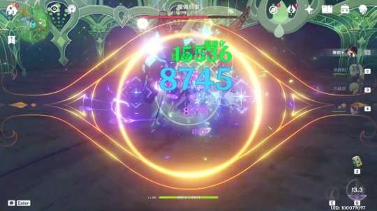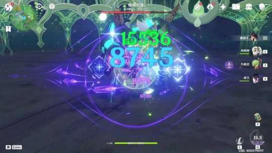 示例:紫色轮廓出现表示可以打出强化元素战技