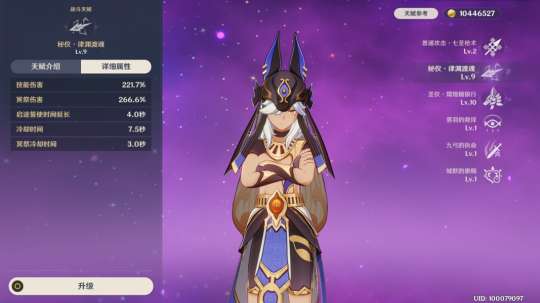 赛诺的主要输出手段是通过使敌人获得雷元素附魔和减少元素战技的冷却时间来实现的。需要注意的是,这里的附魔类似于雷电将军,会给赛诺的普通攻击增加额外的倍率。因此,赛诺的普通攻击无需再进行升级了!