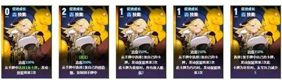 “促进成长”是一个1费技能,可以解锁50%的治愈效果。如果选择自身牌库中的创造物卡牌作为目标,则可以触发两次该卡牌的预留效果。例如,如果选择的目标是一星壮壮卡牌,那么壮壮提供的治愈效果将从30%提升至60%。该技能的首张版本会自动降低费用,而第二张版本虽然会增加费用,但会加入削减词条,其效果也会变为复制手牌中的一张创造物卡牌。