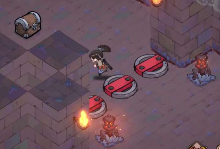 游戏初始场景为新手引导区,主干道呈线性布局。沿左侧小径持续前进,抵达巨型岩体地标后,需切换至细致搜索模式:环绕岩石基座缓慢移动视角,在其西北侧岩缝与藤蔓交叠处存在视觉盲区,此处即为首个可交互宝箱埋点。开启后掉落物品完全随机,包含基础矿锭、临时增益卷轴或稀有图纸碎片。