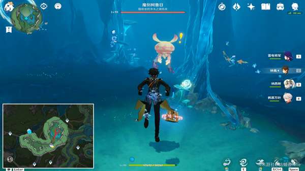 推荐打法:吸收章鱼的力量,当章鱼释放水泡时,目测水泡刚开始向自己移动时,我们释放光束对准水泡,需要一会儿,就能将其反弹回去(记住不要离水母太近,不然来不及击回)