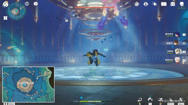 来到高塔下层(中间具有明显的亮紫色发光的那一层),从中间进入秘境(需要调整一下位置,不太好触发进入字样)