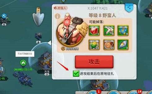 打野英雄天赋一定要点出来洞悉再去打野,野人等级选最高的,这样经验也多,然后就是点击野人,将进攻结束后原地驻扎勾选,这样打完不会自己回城