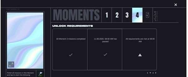 比如上图中,玩家正准备要开启KDA第四天的任务,而给出了三个Unlock Requirements,也就是解锁的条件。