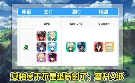 接下来是A级角色,安柏在国内外任何榜单中基本都是垫底的角色,之前在原神Wiki排的这份榜单中也是垫底,但是这次六命安柏成功晋级成为A级辅助角色,终于不再是垫底了。很多A级中的角色都在S和SS级中出现过,只是用途变了,比如琴是SS级辅助,但只是A级主C。