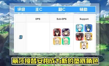 最后是B级角色,本期没有C级角色,B级角色中大部分也在前面的级别中出现过,唯一的新角色就是丽莎,她被评为B级副C,是本期榜单中排名垫底的角色,而且居然副C还需要四命。