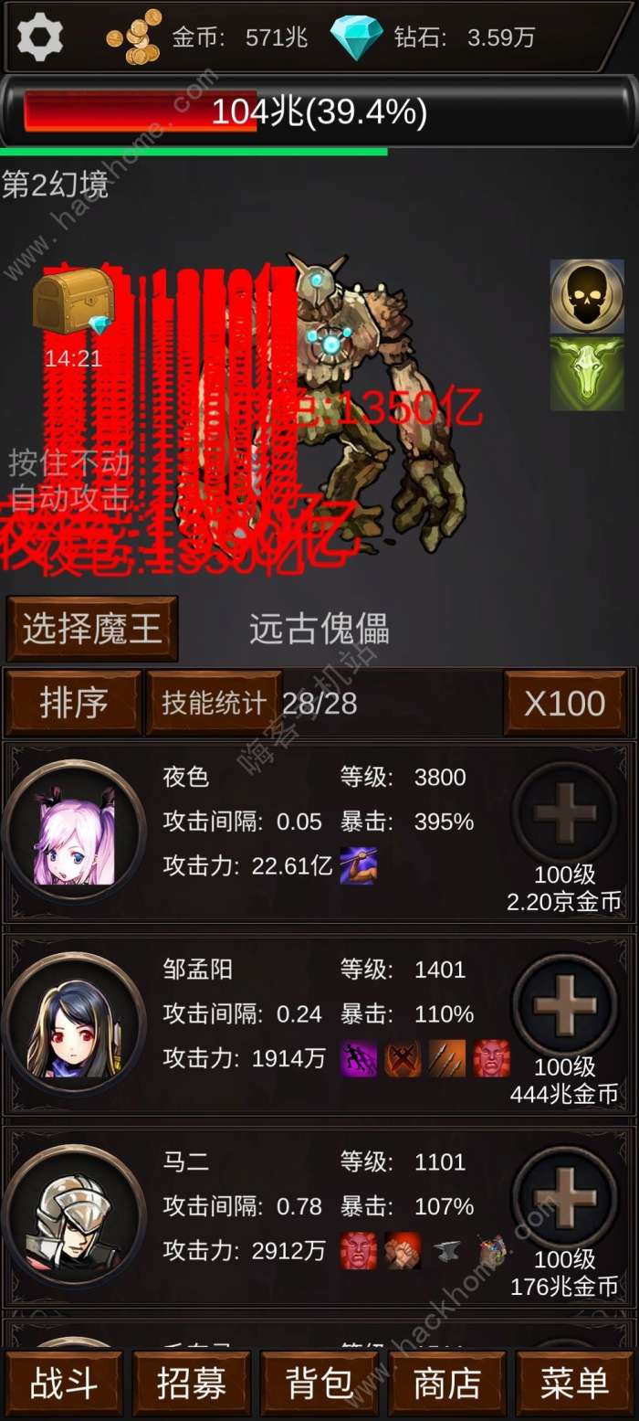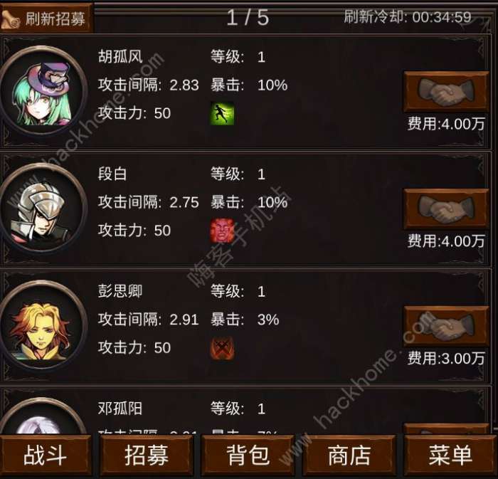 新人进游戏先招募4至5个主角暴击佣兵,前期升到150级主角暴击就应该在100左右(100暴击每次攻击百分百暴击)。