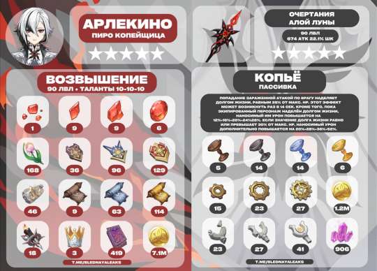 仆人阿蕾奇诺和专武赤色月之形所需要的升级材料给大家分享一下,有部分物品需要等到4.6版本开服后才能获取。不过枫丹的材料可以提前先囤一囤,直接拉满不是梦。