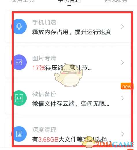 3、进入手新棍机管理界面后,点击“手机加速”。