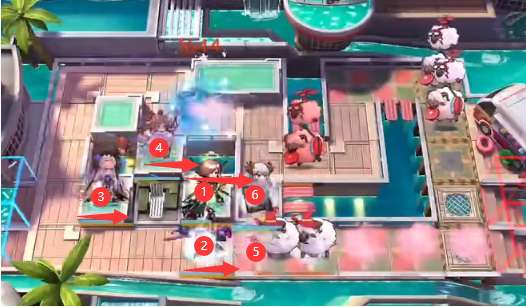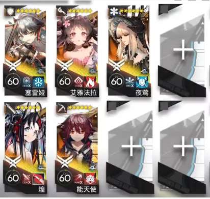 如图所示部署能天使(向左) → 伊芙利特(向左)→ 闪灵(向下) → 铃兰(向左)→ 艾雅法拉(向左),最后在小羊上面补一个高台或者地面都行。