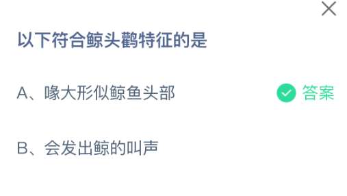 以上就是以下符合鲸头鹳特征的是,支付宝蚂蚁庄园2025年11月27日答案最新,更多精彩内容,请点击关注pk游戏网更新!