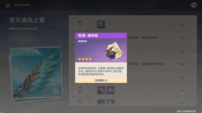 2.捕风瓶:蒙德3级声望获取。