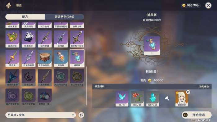 【获取方式】在锻造台,10飓风之种(无相之风掉落)+30风车菊+50水晶块=1捕风瓶。