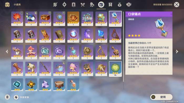 【使用方式】在背包找到口袋锚点,点击使用。