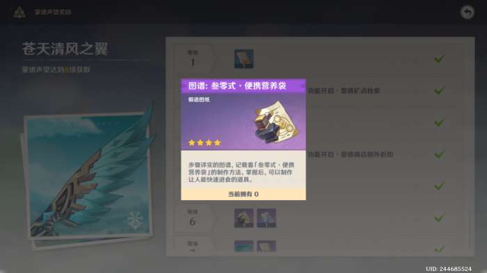1.便携营养袋:蒙德5级声望获取。