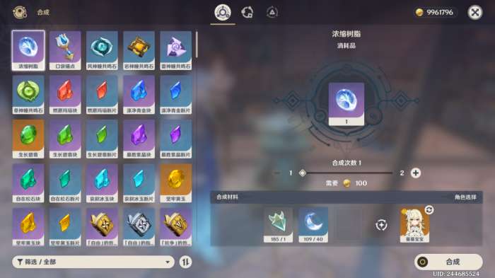 【获取方式】在合成台,40原淬树脂+1晶蝶=1浓缩树脂。