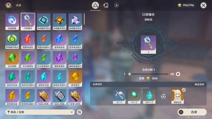 【获取方式】在合成台,1地脉的枯叶+2发光髓(抓萤火虫)+5水晶块=口袋锚点。