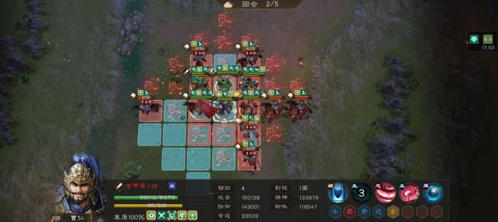 曹仁站在后面中间,皮最脆的站在后面的任意一侧(我的孙权防御最低,就放右下角了),神兽可以带减敌军幸运或加己方生命的