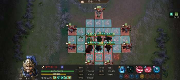 我的曹仁防御为79834,进入战场获得buff后防御到达了119051,和敌军攻击差不了多少了