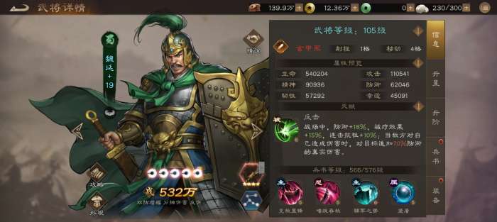 我这里曹仁加了一堆buff后防御已经高达143001,魏延的护卫buff是挨打前增加防御韧性,所以不会显示在面板上