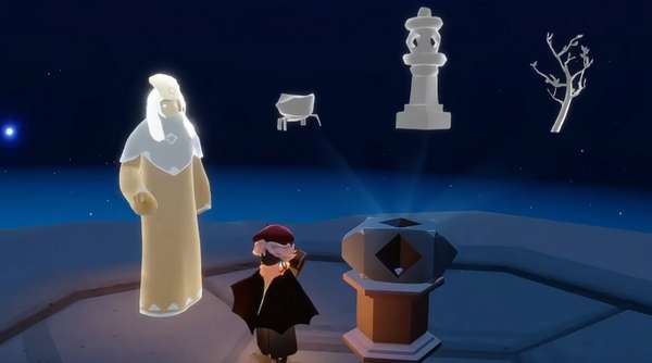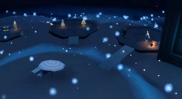 之后通过先祖返回活动场景,点燃眼前的灯笼然后场景会变化,随后先祖身边会出现3颗代币数量的烛火。然后前往遮阳伞所在的小沙滩处,这里也有两颗代币数量的烛火,以上是每日刷新的5颗代币。