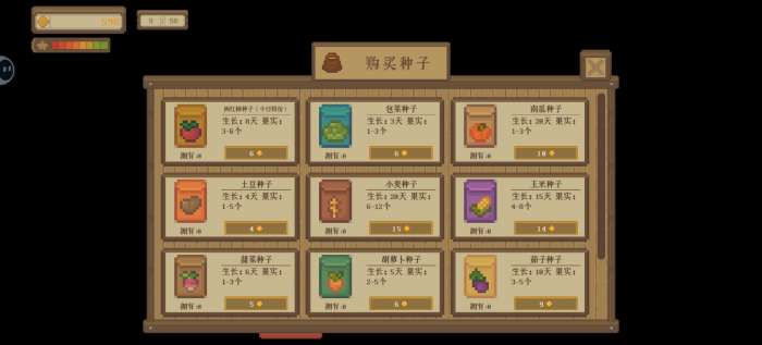 前期可以免去买种子的花费,买的种子要长按移到工具栏