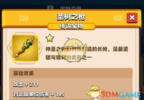 传说级别的宝物,这是神圣之树打造的长枪,所以是在游戏里最锋利坚韧的武器。