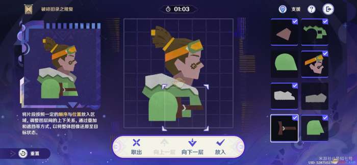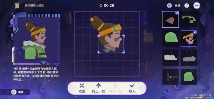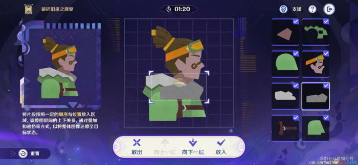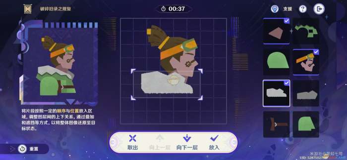 软件提交 专题合集 热门手游随着活动的推进我们迎来了原神暝视寻灵织卷-破碎旧录之规复第六关卡的挑战,这一关需要我们对布基纳进行修复,将片段按照一定的顺序和位置进行摆放即可,那么具体怎么过呢?下面小编整理了《原神》破碎旧录之规复第6关布基纳攻略,一起看看吧。