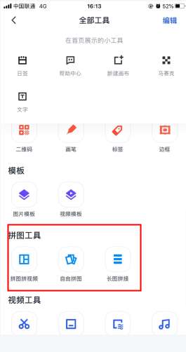 2、下滑至【拼图工具】,选择你想要的拼图类型