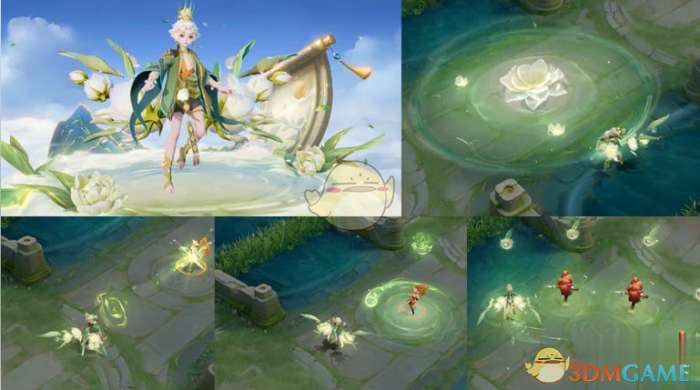 而特效上的表现也同样如此,都是以绿色、茉莉花为主基调,看起来虽然没有孙膑其他皮肤华丽,但是其实也是有亮点设计的,就比如大招的茶碾转动,我觉得倒是非常符合这次设计主题
