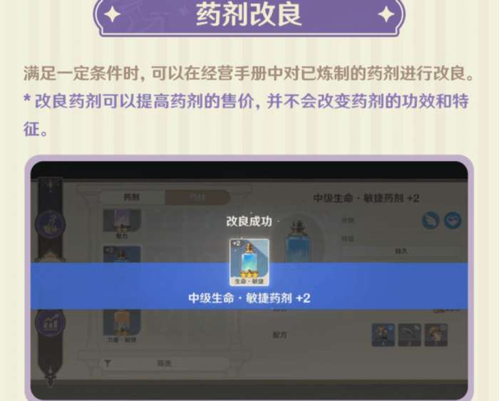 满足一定条件时,可以在【经营手册】中对已炼制的药剂进行改良。