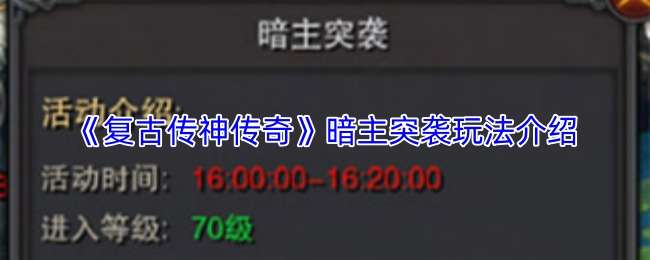 以上就是小编带来的《复古传神传奇》暗主突袭玩法介绍,更多相关攻略,请关注pk游戏网。