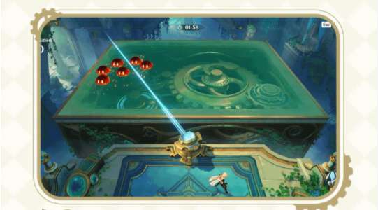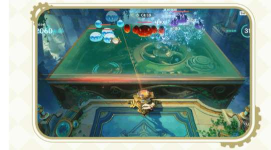 3、挑战中记得仔细观察场内,会突然出现各色特殊机械装置,帮助旅行者击败更多史莱姆。