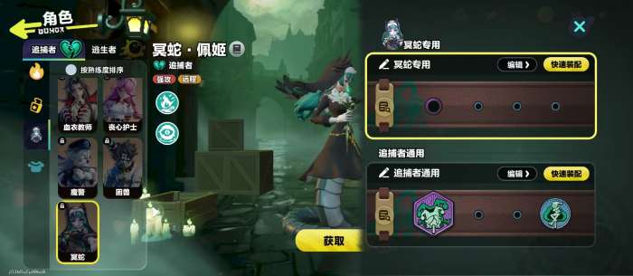 冥蛇佩姬就有两种解锁方法,有永久解锁,还有限时体验。玩家可以通过酷乐币去获取,只需要打开游戏的主界面进入到商店切换到娱乐玩法,就能找到逃出惊魂夜的主题,在这里就可以直接兑换。或者是在逃出惊魂夜的玩法图标进入到准备页,点击一下左侧的角色入口,在追捕者的列表中也可以选中,然后去点击兑换。酷乐币的获取并不是很难,通过日常任务或者是正常的对战就可以获取,并不需要选择额外的氪金。