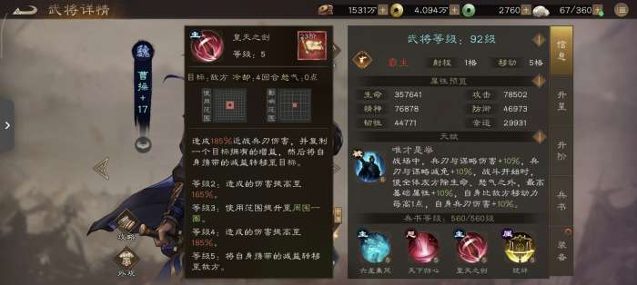 关键价值:15%属性加成直接体现在面板,收益巨大;1点移动力对跑图、以及与部分武将(如夏侯惇,郭嘉)的天赋相得益彰。